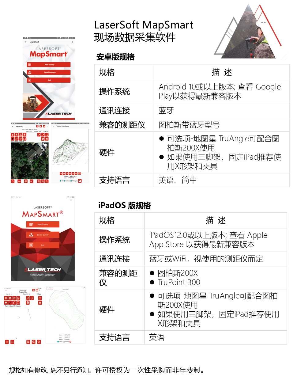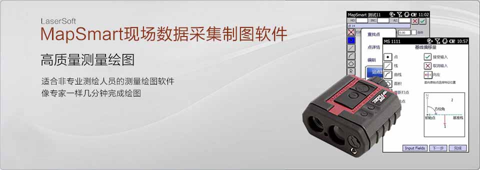 如果您是非专业测绘人员,而要面临测量任务,可能很难理解您所用的软件。使用LTI的MapSmart 数据采集软件,可以让你像专家一样在几分钟内完成测量绘图任务。自动收集保存数据点,并能传输到您的PAD中。并可通过文本格式浏览数据,生成位图图像或使用CAD软件程序打开图像。